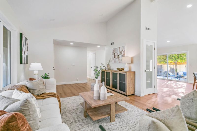 Welcome to 4171 Ambler Way, a beautifully remodeled single-family home in the vibrant heart of San Jose, just moments from the scenic trails of Hellyer County Park. Offering 1,462 sq. ft. of living space, this thoughtfully updated residence features 3 bedrooms and 2 full bathrooms, designed with both comfort and style in mind. Step inside to discover a modern kitchen with sleek quartz countertops and an electric oven, perfect for culinary enthusiasts. The inviting family room with a cozy fireplace and an adjoining dining area create the ideal space for gatherings, while vaulted ceilings enhance the homes airy, open feel. Recently renovated in 2025 with permits, the home showcases fresh updates including new finishes, modern fixtures, new roof and system upgrades for peace of mind. Enjoy year-round comfort with central AC and heating. Combining modern charm, smart updates, and an excellent location near nature, shopping, and Silicon Valley access, this move-in-ready home is the perfect blend of lifestyle and value.