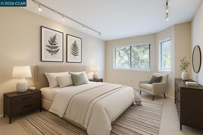 Come on by! This updated beauty is in an attractive community surrounded by redwoods, walking paths, and tranquil fountains. A charming front patio creates a welcoming entry to this two-story townhouse-style condo. The desirable floor plan has an open kitchen overlooking the dining area and living room. Enjoy two spacious bedroom suites, both providing privacy and comfort. The primary suite features vaulted ceilings, dual closets, an updated bathroom, and a private balcony—a perfect spot to relax. Fresh interior paint, brand-new carpet, central heat and air, and inside laundry add modern convenience. Additional highlights include a hallway skylight that fills the space with natural light, interior access from the attached one-car garage, ample off-street parking throughout the community, and a community pool. This ideally located home is close to parks, schools, and major shopping and dining destinations including Sun Valley Mall, The Veranda, and Downtown Pleasant Hill, with convenient freeway access.