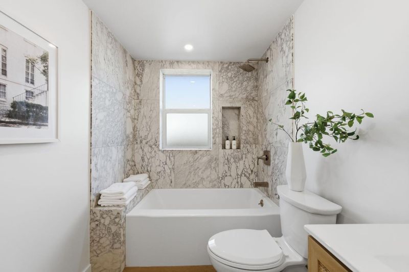 Tucked just moments from downtown, 711 Roosevelt Avenue offers the rare combination of refined design, everyday comfort & future potential- all wrapped into a beautiful, turnkey home. The home features 2 spacious bedrooms & 1.5 beautifully updated baths, with the main bathroom designed as a true retreat. A tub wrapped in dramatic marble with a niche & bench and softened by light wood & rattan accents creates a natural, spa-like atmosphere. The open-concept living & dining areas flow effortlessly into a thoughtfully designed kitchen. The timeless kitchen anchors the home with white shaker cabinetry, natural stone countertops, classic subway tile, all-new stainless steel appliances & a sleek peninsula that naturally invites gathering. Air conditioning & heat provided by new mini-split ensures year-round comfort, while the seamless layout makes the home feel both polished & effortless. Indoor laundry closet for ease and convenience. Outdoors, a lovely, grassy yard with a sun-washed deck creates an ideal extension of the living space, with ample room for entertaining, relaxing, or ADU potential. Off-street parking adds everyday ease, & the homes proximity to shops, dining, and transit in downtown Redwood City makes this location as convenient as it is desirable.