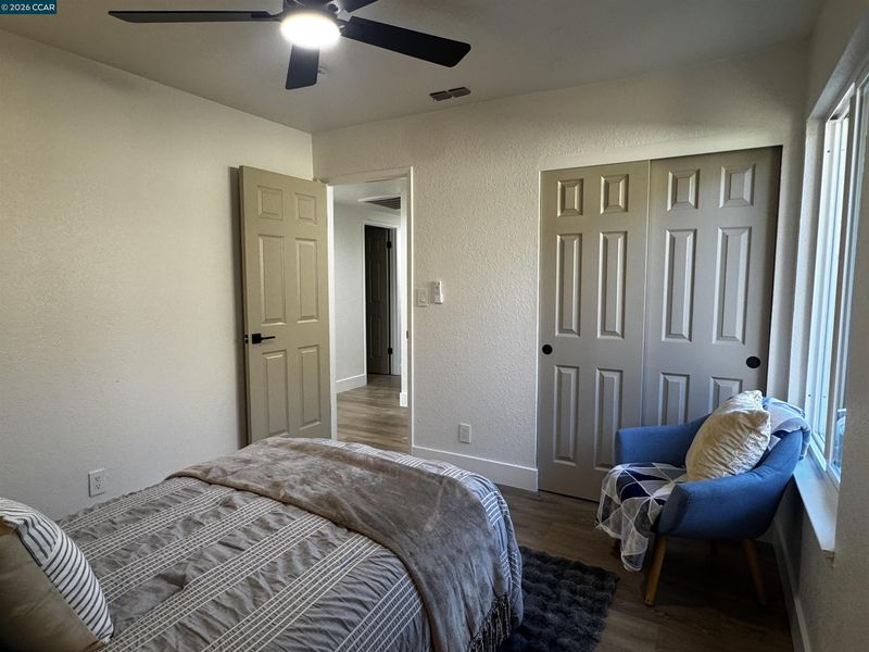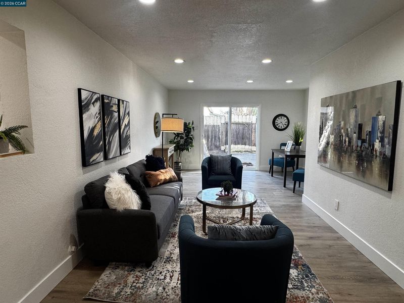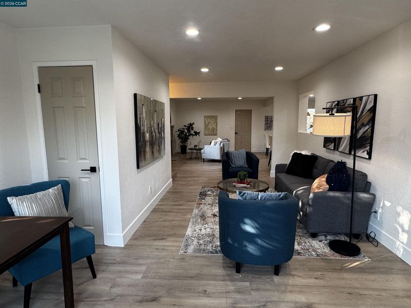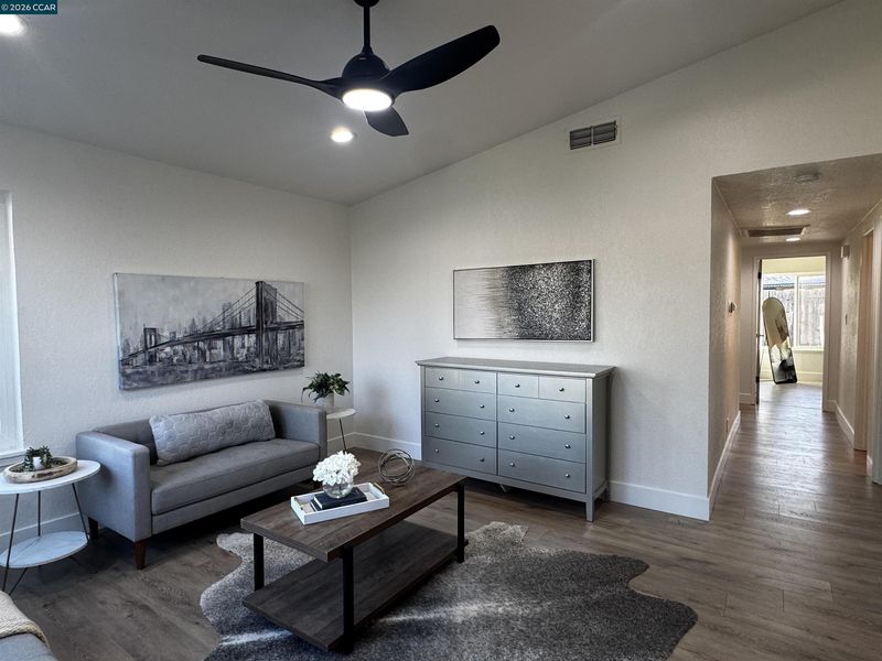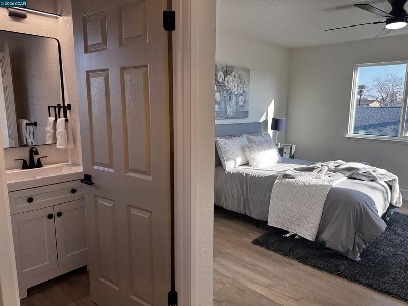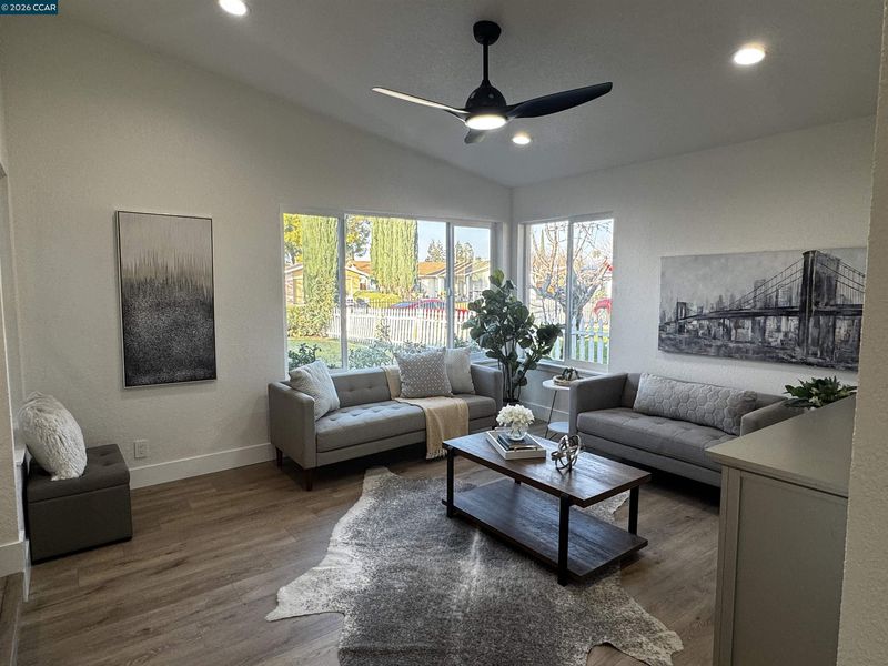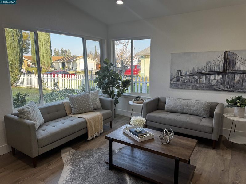 Step into this beautifully renovated home offering an impressive blend of modern comfort, thoughtful design, and abundant living space. With two primary bedrooms featuring private en suites, including one tucked away upstairs for added privacy, this home delivers flexibility for multi-generational living, guests, or a luxurious personal retreat. The entire home features laminate flooring throughout, creating a clean, cohesive flow across three spacious living and family rooms. The central family room is anchored by a gas-burning fireplace, adding warmth and charm to the heart of the home. At the center of the layout sits the gorgeous upgraded kitchen, complete with a stylish peninsula, modern finishes, and an inviting eat-in dining area perfect for everyday meals or casual gatherings. A dedicated laundry room adds convenience and functionality. With two additional bedrooms beyond the dual primary suites, the home offers plenty of room for family, guests, or home office needs. Outside, enjoy a spacious front yard and a large backyard—ideal for entertaining, gardening, or future outdoor enhancements. This fully renovated property delivers space, style, and versatility in every corner, making it a standout opportunity for today’s buyers.