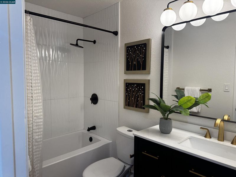 - Shower Over Tub, Solid Surface, Tile, Tub, Updated Baths, Dual Flush Toilet
