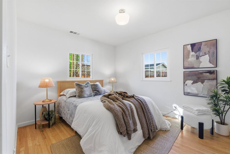 Beautifully upgraded & thoughtfully curated, this home offers warm finishes, an inviting layout, and light-filled living spaces designed for everyday comfort and entertaining. The kitchen serves as the heart of the home, anchored by hand-painted Clé Tile, heritage lighting from Schoolhouse Electric, and pro-grade KitchenAid appliances. A nearly 400 sq ft bonus space with air conditioning, along with a separate freestanding garden office, provides excellent flexibility for work-from-home, guests, or creative use. Recent improvements include updated plumbing, HVAC, fencing, and drainage, offering added peace of mind. The private backyard is ideal for relaxing, entertaining, and gardening, with raised beds and fruit-bearing trees, including pomegranate, cherry, nectarine to name a few. Conveniently located near shopping, dining, BART, and major commuter routes, this move-in-ready home blends character, functionality, and an exceptional location.