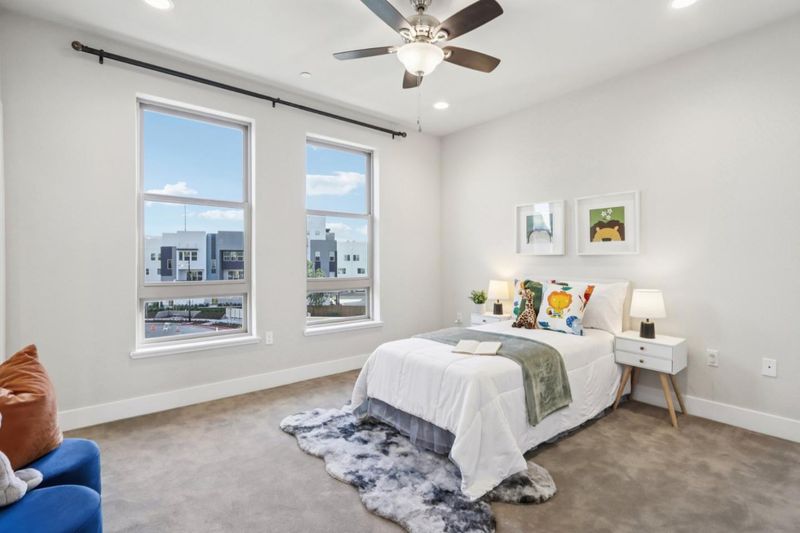 Welcome to this modern, beautifully maintained townhome built in 2018, offering 3 bedrooms, 3.5 bathrooms, and approximately 1,887 sq ft of contemporary living in the desirable Ellison Park Community. A rare value-add, this home features fully owned solar panels, providing reduced utility costs, protection against rising electricity rates with no lease or additional payments. Designed for privacy and flexibility, all three bedrooms function as private suites, including a first-floor bedroom suite ideal for guests, multi-generational living, or rental potential, and two spacious upper-level primary suites with walk-in closets and en-suite bathrooms. The second level features a bright, open-concept living area that flows seamlessly into the modern kitchen with Quartz countertops, stainless steel appliances, a walk-in pantry, and a large center island perfect for cooking enthusiasts, families, and entertaining. Additional highlights include central A/C, dual-pane windows, and an attached two-car side-by-side garage with EV charging. Ideally located near Mabel Mattos Elementary School, Trader Joes, H-Mart, and the Great Mall, with easy access to BART, and highways 880, 680, and 237, plus tech campuses. A true opportunity to own a modern, energy-efficient, move-in ready home!
