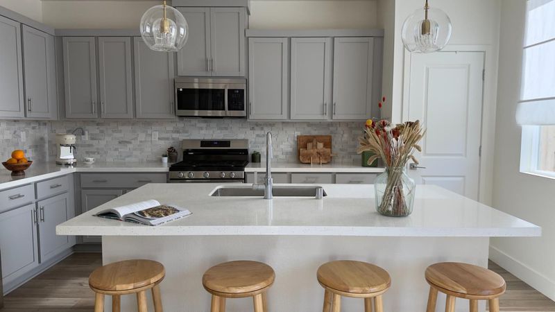 - Cooktop - Gas, Countertop - Quartz, Dishwasher, Island with Sink, Microwave, Oven Range, Refrigerator