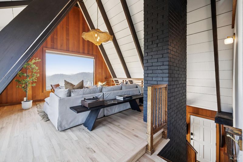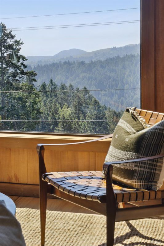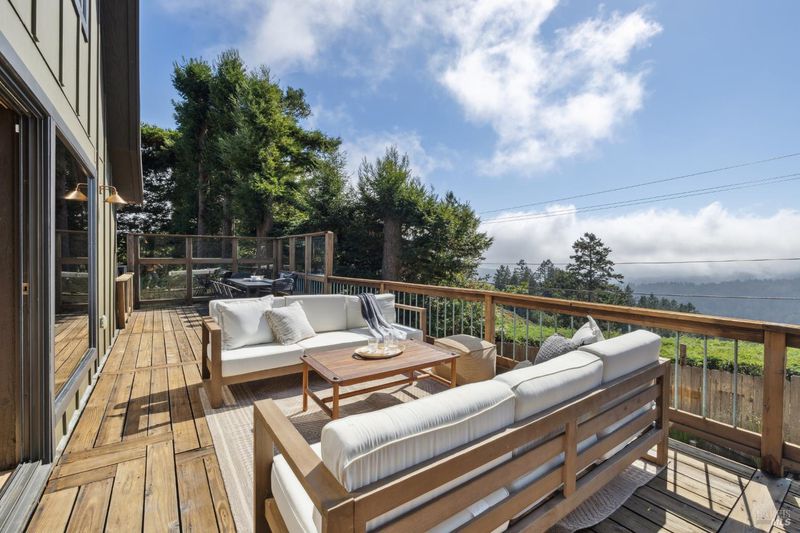 Rare architecturally striking A-frame retreat where sweeping ocean + bay views meet modern design creating a sanctuary for the soul. There is a rich sense of history w/ the warmth of wood + beam ceilings elevated by designer touches. Enjoy an open floor plan that soaks in the light filled views & invites you to step outside to expansive outdoor areas perfect for sunset barbecues & starlit gatherings. The community areas bright w/ expansive vistas anchor the home w/ a perfect flow between the designer kitchen, bar seating, dining area & the living room w/ a cozy wood burning fireplace. The private primary suite is also on the main level w/ direct deck access & stunning spa-like bath. Upstairs, a dramatic family room w/ soaring ceilings captures incredible ocean views. A spacious bedroom w/ bay views, previously two rooms (easily converted back) & a 2nd remodeled bath complete this level. Above it all, a whimsical loft offers bay vistas + possibilities for a 4th bedroom, office or play space. Set on a private cul-de-sac enclave, on an expansive 8,250 sqft lot w/ gardens, a redwood grove, garden shed, storage & wine cellar. Minutes to DTMV, distinguished schools, Muir Woods + Beaches. Strolling distance to the Muir Woods Park Comm Assoc, Mt Home Inn & Tourist Club