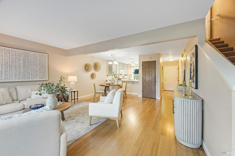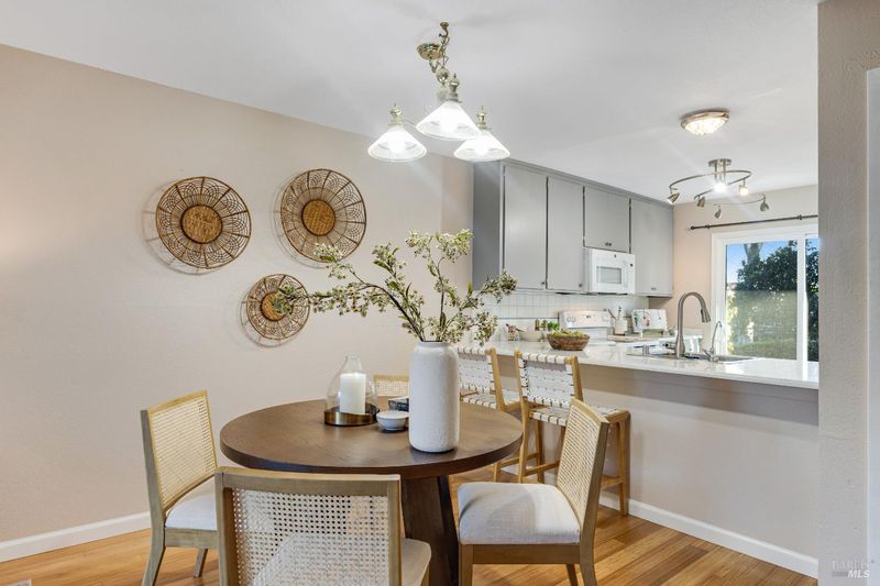 Welcome to this lovely, spacious end-unit condo in the heart of Rohnert Park, offering an open layout with room to entertain or unwind. The well-appointed kitchen flows seamlessly into the dining and living areas, creating a warm and welcoming atmosphere, with walls of windows bringing in lots of natural light. Upstairs, you'll find two generously sized bedrooms with plenty of storage space. Enjoy the convenience of your washer and dryer on the second floor. Outdoor living is easy with a private patio, ideal for relaxing with a morning coffee or an evening under the stars. Parking is a breeze with a garage space, along with an additional assigned spot outside your back door. This property combines functionality and comfort, offering everything you need to feel at home. Located in a peaceful and well-maintained community, this is an ideal choice for those seeking a low-maintenance lifestyle with plenty of space to enjoy. Set wonderfully close to shopping, elementary schools, the SMART Train station, Sonoma State, Foxtail Golf Course, and Honeybee neighborhood pool, there is so much right nearby.