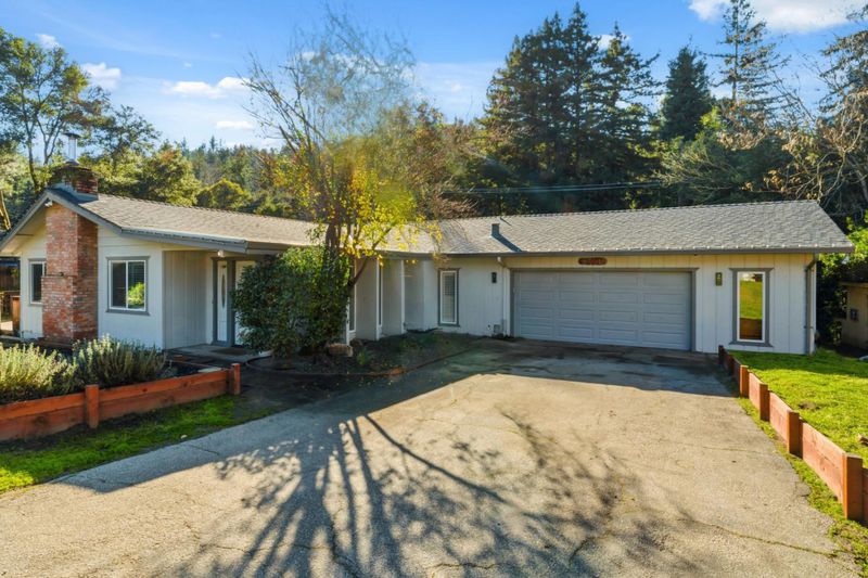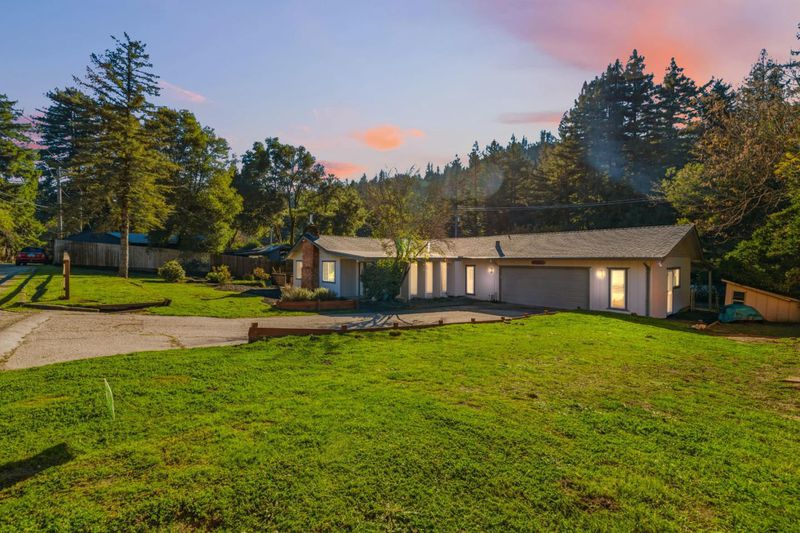 Located on a spacious, sunny lot, this turnkey 5 bedroom, 3 bath home showcases timeless mid-century modern character. The living room is beautiful with a striking newly installed marble hearth fireplace, creating a warm and inviting focal point. Entertain with ease in the formal dining room and wet bar, perfect for hosting holiday gatherings or enjoying desserts made with fruit harvested from the homes mature trees. Oversized windows throughout the home provide the interiors with natural light and create a connection to the outdoors. Recent upgrades include whole house water filtration with water softening and reverse osmosis, 30 year roof (approx 3 years old), and water heater. Outside, the expansive yard offers mature fruit producing trees, ample space for gardening, lawn games like badminton, or simply relaxing on a peaceful afternoon accompanied by birdsong. Excellent separation of space gives an opportunity to use it as a rental unit paving the way to financial independence. Ideally situated for commuters, the property provides convenient access to Silicon Valley via scenic Highway 9, while being just minutes from downtown Boulder Creek and its health food stores, restaurants, and local amenities.