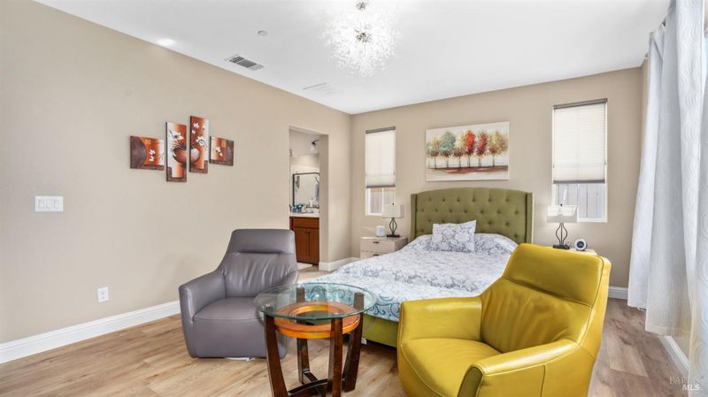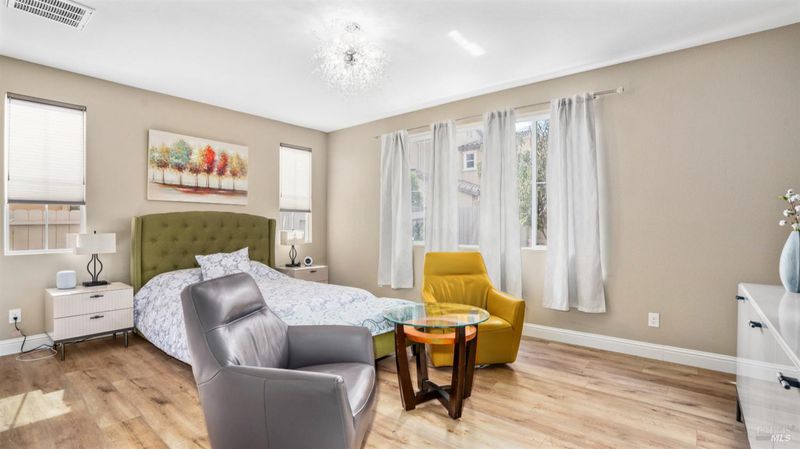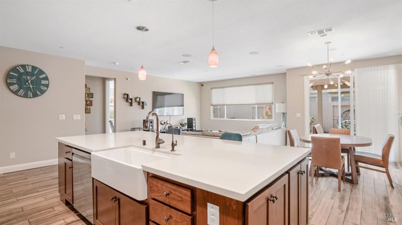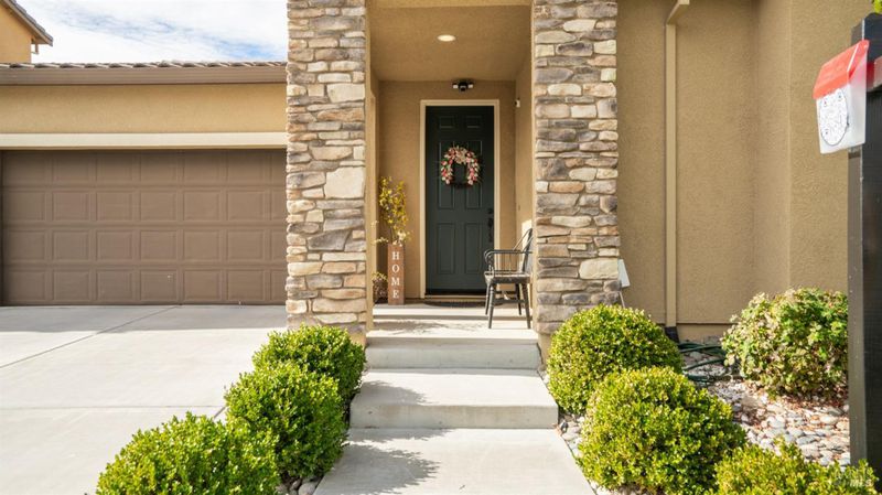Welcome to your new home at Water Lily Circle, where comfort and charm meet. This beautiful single-story home offers stunning curb appeal and a fully landscaped backyard that's perfect for relaxing or entertaining. As you step inside, you'll immediately appreciate the open, inviting layout with a thoughtful split-bedroom design-perfect for guests, warm wood-look tile, and a spacious entryway that sets the tone for the entire home. The heart of the homethe kitchenis truly a gathering place, featuring a large island, sleek modern light fixtures, and a custom backsplash that adds character. Whether it's a casual breakfast or a family celebration, the cozy seating area and ample counter space make meal prep and entertaining a breeze. With a walk-in pantry and generous cabinet storage, you'll have everything you need right at your fingertips. The serene primary suite is a true retreat, offering plenty of room for a king-size bed and a quiet seating nook. The luxurious soaking tub and custom closet system elevate the space, making it the perfect spot to unwind after a long day. Picture yourself enjoying a relaxing bath or savoring a glass of wine in your private, beautifully landscaped backyard. This home is built with energy efficiency in mind, offering paid solar, an owned water softener, tankless water heater, and an ecobee thermostat, making it as sustainable as it is comfortable. Nestled in the vibrant Brighton Landing community, there's no HOA to worry about. You'll love being just minutes from the new Play for All park, Kairos School, and all the conveniences you need, including premium outlets, highways, CMF, TAFB, and so much more. Let Vacaville welcome you home!