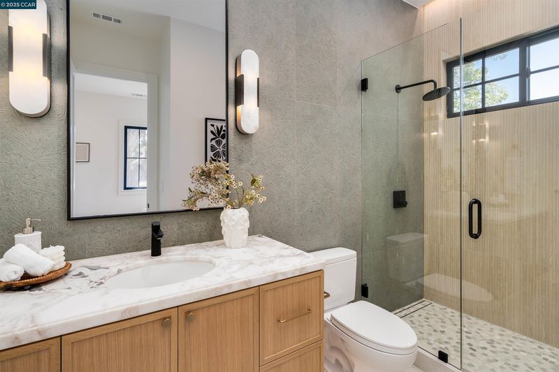 Approaching this brand-new custom home in sought-after Danville—backing onto Diablo Country Club Golf Course—you’ll find timeless design, premium finishes & exceptional craftsmanship. Designed by John Newton, built by CS Development under Cristian Szilagy, and styled by Roxana Szilagy, no detail is overlooked. Inside, 22 ft. high foyer ceiling, white oak floors, stone countertops, and smooth-finish walls set a refined tone. Custom lighting and Andersen windows elevate every space, while owned solar adds efficiency. A striking foyer accent wall introduces formal living spaces. The chef’s kitchen shines with Taj Mahal quartzite counters, handmade Zellige backsplash, white oak cabinetry, walk-in pantry, Wolf cooktop, Thermador appliances, and an oversized island flowing to the family and dining rooms. Accordion doors open to a covered patio, perfect for entertaining. Two main-level suites offer ideal flexibility. Upstairs, the vaulted primary suite boasts a fireplace, balcony, spa bath with Calacatta Gold marble, dual closets, and laundry access. A loft and two bedrooms complete the level. Outdoors, enjoy a covered patio with skylights, firepit, lawn & majestic oak. Within San Ramon Valley School District & near Blackhawk & Diablo Country Clubs, this is a rare opportunity.