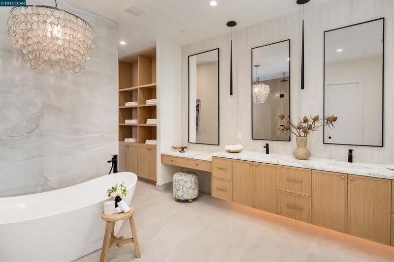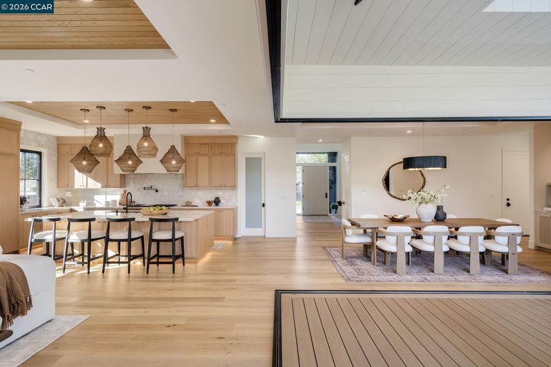 Approaching this brand-new custom home in sought-after Danville—backing onto Diablo Country Club Golf Course—you’ll find timeless design, premium finishes & exceptional craftsmanship. Designed by John Newton, built by CS Development under Cristian Szilagy, and styled by Roxana Szilagy, no detail is overlooked. Inside, 22 ft. high foyer ceiling, white oak floors, stone countertops, and smooth-finish walls set a refined tone. Custom lighting and Andersen windows elevate every space, while owned solar adds efficiency. A striking foyer accent wall introduces formal living spaces. The chef’s kitchen shines with Taj Mahal quartzite counters, handmade Zellige backsplash, white oak cabinetry, walk-in pantry, Wolf cooktop, Thermador appliances, and an oversized island flowing to the family and dining rooms. Accordion doors open to a covered patio, perfect for entertaining.