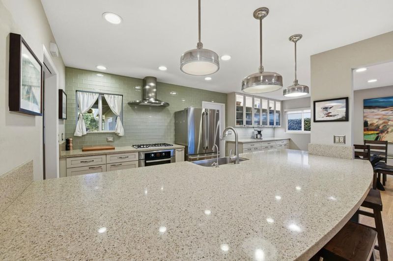 Located in the heart of Willow Glen, this beautifully updated 3-bedroom, 2.5-bath home blends timeless style with modern comfort and can be purchased furnished for a truly turnkey experience. Tile entry and hardwood floors flow throughout an open, light-filled floor plan anchored by a stunning chefs kitchen featuring an oversized quartz island with bar seating for four, custom cabinetry, stainless steel appliances, farmhouse sink, glass subway tile backsplash, a built-in water filtration system, and an impressive dry bar with illuminated glass display cabinets. Warm, neutral interior and exterior paint tones are perfectly complemented by stained wood interior doors, while the inviting living room offers a cozy gas fireplace. Step outside to a thoughtfully designed backyard with a concrete patio, California native landscaping, and digital irrigation system, plus a shed for added storage. Additional highlights include a new 200-amp electrical panel with EV charger, newer roof, a well-appointed laundry area with matching cabinetry and countertops, and a stylish glass door separating the half bath and laundryevery detail thoughtfully curated for ease, comfort and style.