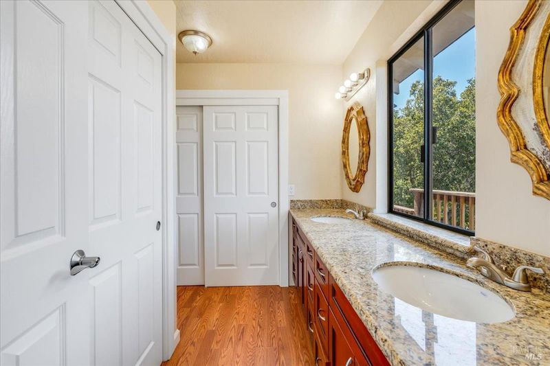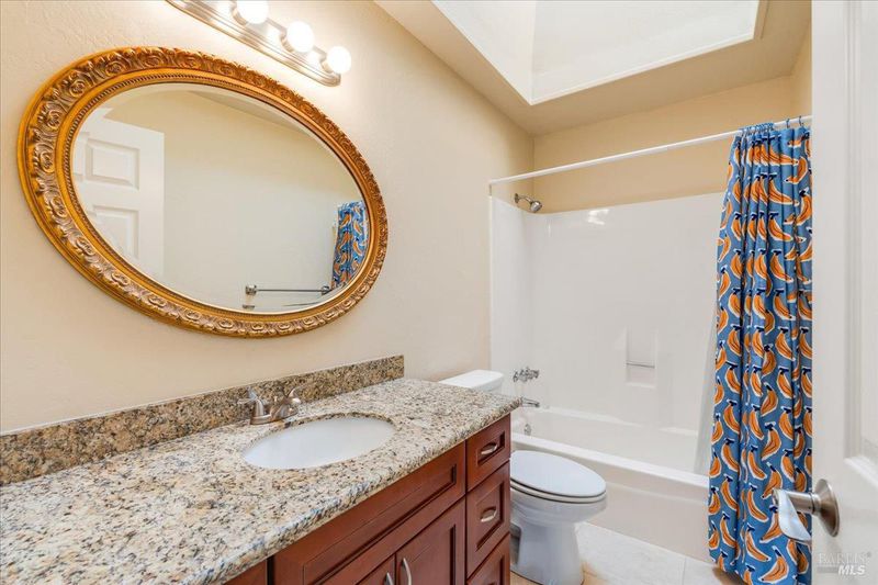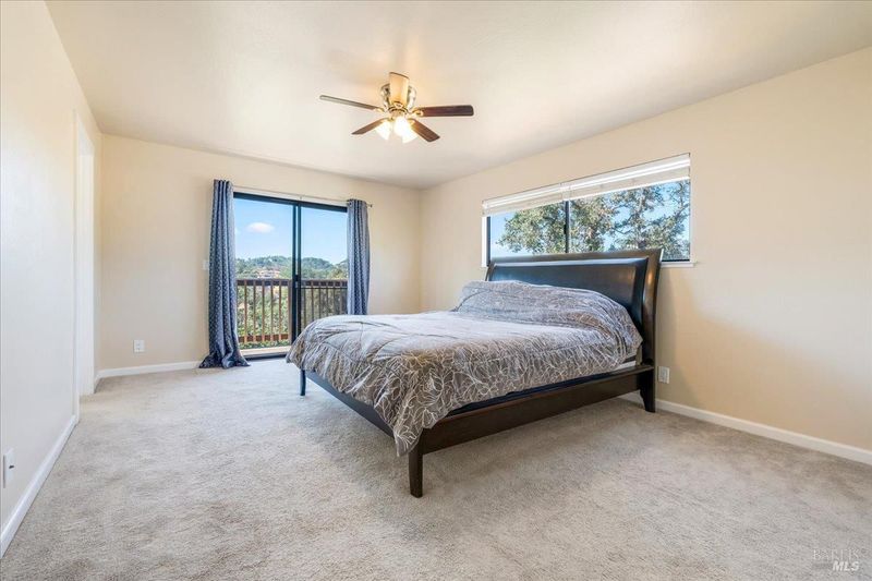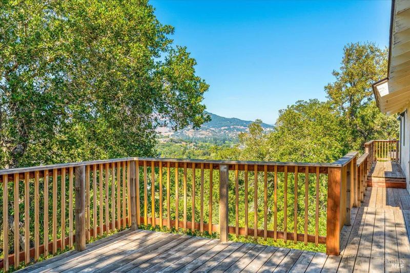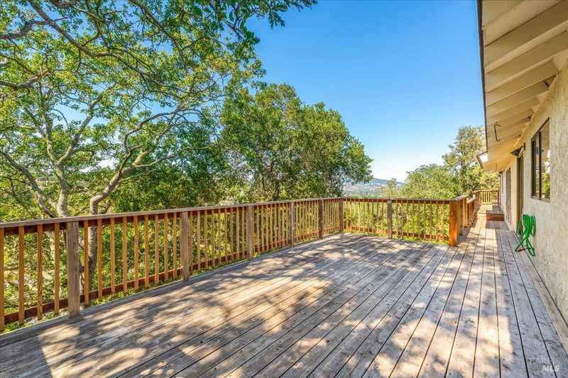 Spacious two-story Novato view home features five bedrooms and three and a half bathrooms. Level front yard offers an inviting enclosed patio and planting area. Entering the house, you can see across the living room to the gorgeous views of the rolling hills and oak trees. The ample, light-filled living room has a wood-burning fireplace, and the adjacent formal dining area provides access to a view deck that runs the length of the upper level. The kitchen features a pantry, granite countertops, stainless-steel appliances and a dining bar. The large family room attached to the kitchen has a cocktail bar and can also be used as an informal dining area. Bathrooms are all updated with granite counters. Enjoy your primary bedroom with a spacious bathroom featuring a double sink vanity, tumbled stone shower and great closet space. This home has an attached two-car garage with laundry. Located in the desirable Presidents neighborhood.