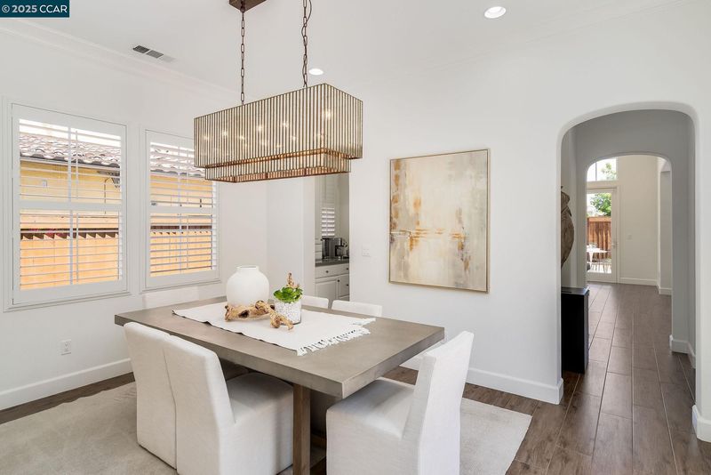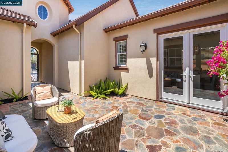 HIGHLY DESIRABLE & RARE SINGLE STORY! OPEN THIS WEEKEND! Beautifully located within the prestigious Alamo Creek neighborhood, this highly desirable and rarely available “Magnolia Plan 1” single-story French Country style home offers 2,363 SqFt of refined, open and elegant living space including four spacious bedrooms, two and a half luxurious bathrooms, formal dining room, kitchen-family room open floor plan concept, and practical 3 car garage. Many top-quality upgrades such as designer interior and exterior colors, custom wood shutters with authentic hardware, arched entryway, architectural alcoves and niches, Andersen doors, dual pane windows, decorative crown molding, plantation shutters, extensive built-in cabinetry, designer porcelain tile flooring, high quality carpeting, high-end Thermador SS appliance package, two-sided inset mirrored closet doors, designer light fixtures and fans, and so much more! This residence is ideally situated on a professionally hardscaped and landscaped 6,264 SqFt lot with no rear neighbor, a charming courtyard entry, stamped concrete patio, multiple lush trees and shrubbery, and is within close proximity to top-rated schools, numerous community parks, playgrounds and trails. This enticing residence truly defines the ultimate California living.