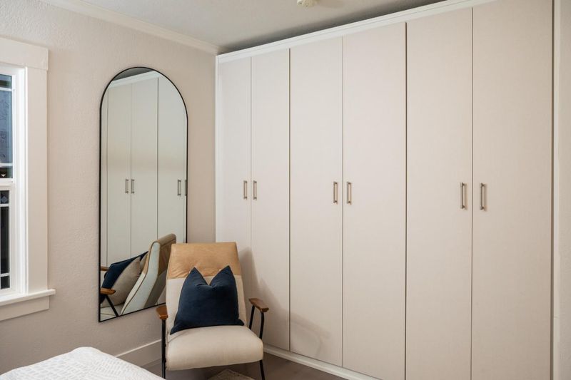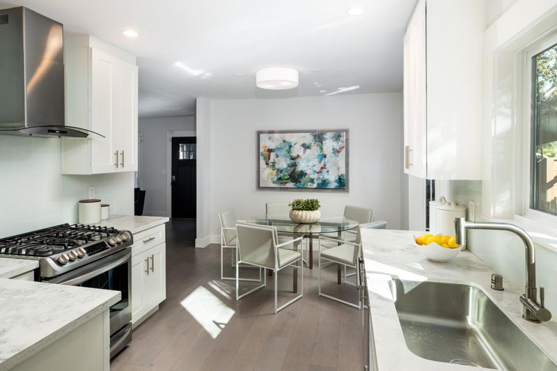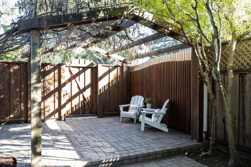 This beautifully reimagined single-level residence delivers timeless character, modern sophistication, and exceptional indoor-outdoor living on a desirable level lot. Approximately 1,100 square feet of thoughtfully designed space includes two bedrooms, a versatile bonus room/office, and a spa-inspired bathroom. Sunlight fills the inviting living room, anchored by a charming bay window and wood-burning fireplace, while the dining area framed by its own bay window creates an ideal setting for everyday meals and entertaining. The remodeled kitchen is both elegant and functional, featuring shaker cabinetry, quartz countertops, glass tile backsplash, stainless steel appliances, and seamless access to the backyard. The luxurious bathroom offers ceramic tile floors, a floating vanity with lighted mirror, a spacious tiled shower with dual shower heads, built-in bench, frameless glass enclosure, and bidet-style toilet. The primary bedroom includes custom built-ins, and the bonus room impresses with vaulted ceilings, skylights, and French doors opening outdoors. A charming front porch, private backyard retreat with pergola, paver patio, and putting green complete the experience. Ideally located near downtown Palo Alto, Stanford University, Highway 101 plus outstanding Palo Alto schools!