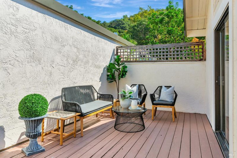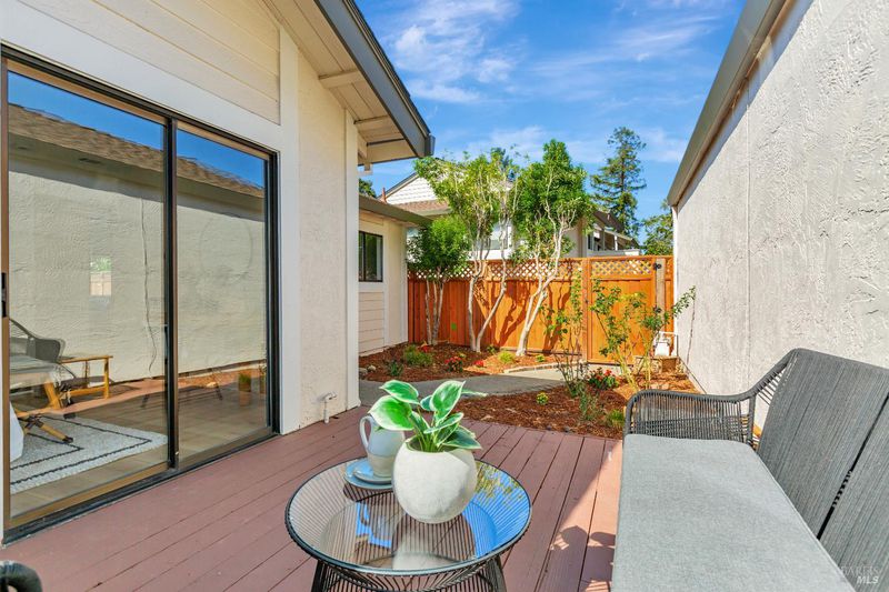Welcome to Meadow Oaks, one of Marin's most desirable communities! Nestled in the scenic hills of San Rafael yet close to all amenities,this idyllic neighborhood is surrounded by majestic oak trees and nature that instantly puts you at ease.This beautifully remodeled one level 2-bedroom, 2-bath end-unit (2025) lives like a single-family home without the maintenance. Updates include:New LVP flooring throughout,fresh interior paint,updated kitchen with new stainless steel appliances and quartz countertops,bathrooms updated with upscale vanities and quartz surfaces,new lighting fixtures and hardware throughout.The primary suite leads to a private deck with garden and boasts soaring ceilings and dual closets. The family room offers vaulted ceilings and a cozy fireplace while the fenced entry includes a front garden and deck perfect for relaxing or entertaining. The home offers an unbeatable location close to shopping, dining, parks,and hiking trails. Enjoy the iconic Frank Loyd Wright Civic Center Farmers Market and community events, the nearby Lagoon for walks, and effortless commuting with SMART Train access and Highway 101 just minutes away.The sparkling lap pool,spa and clubhouse are right out your door.Your chance to live in an easy peaceful retreat!