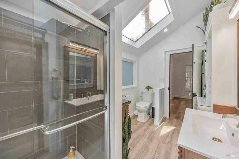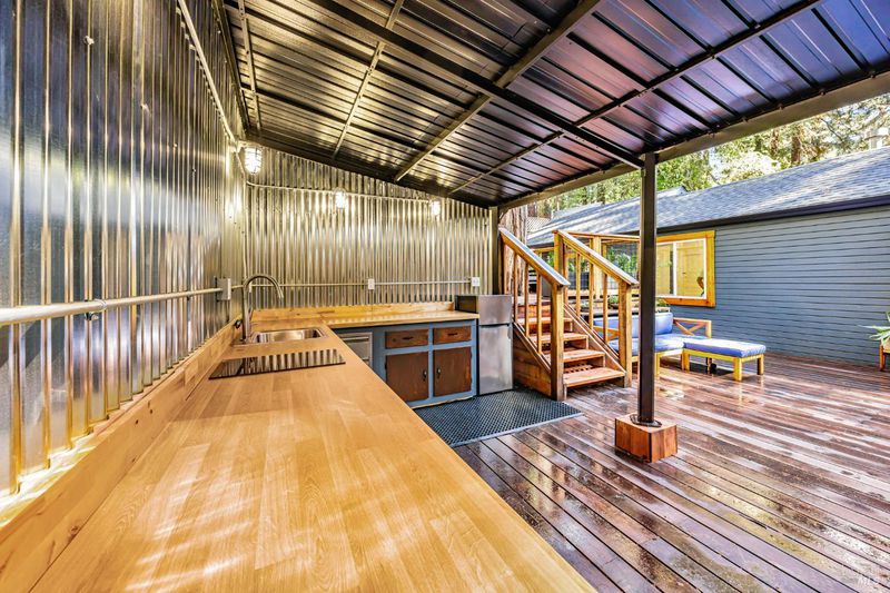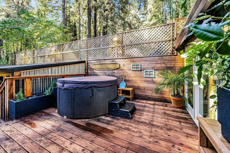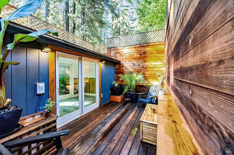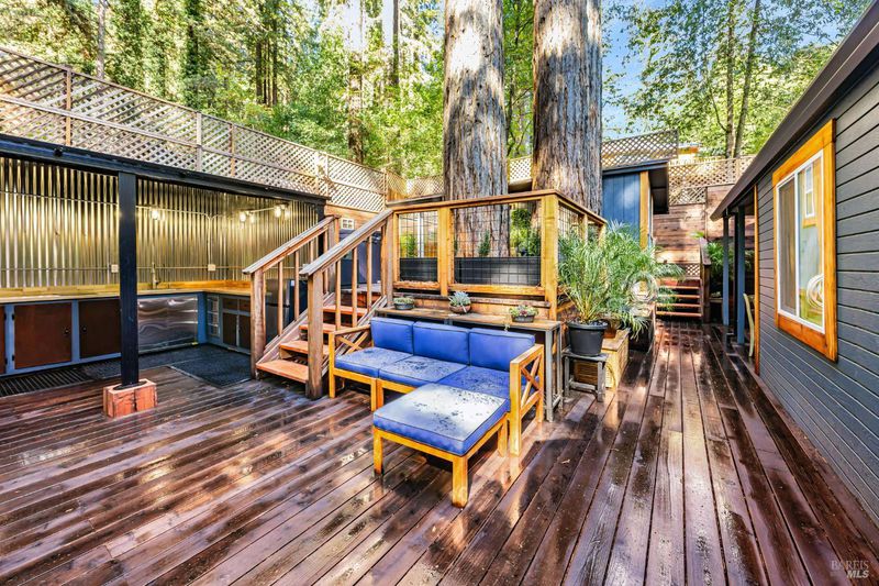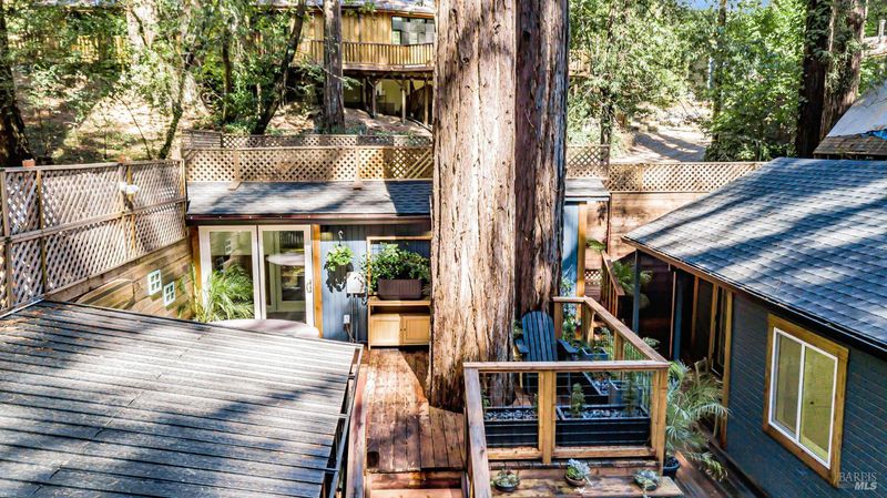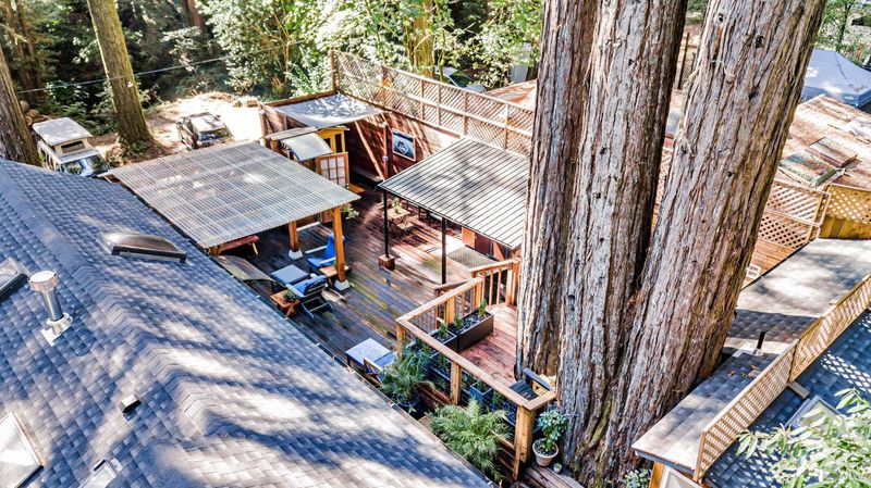 Magical Redwood Compound - Nestled among towering redwoods, this recently renovated property blends modern comfort with serene natural beauty. The main residence is complemented by a charming detached 1-bedroom/1-bath guest house with its own private deck--perfect for guests, extended family, or rental income. An expansive enclosed redwood deck creates a private outdoor sanctuary, complete with spa, sauna, and outdoor kitchen. Designed for indoor-outdoor living, this retreat offers a rare opportunity to enjoy both modern amenities and the tranquility of the forest.