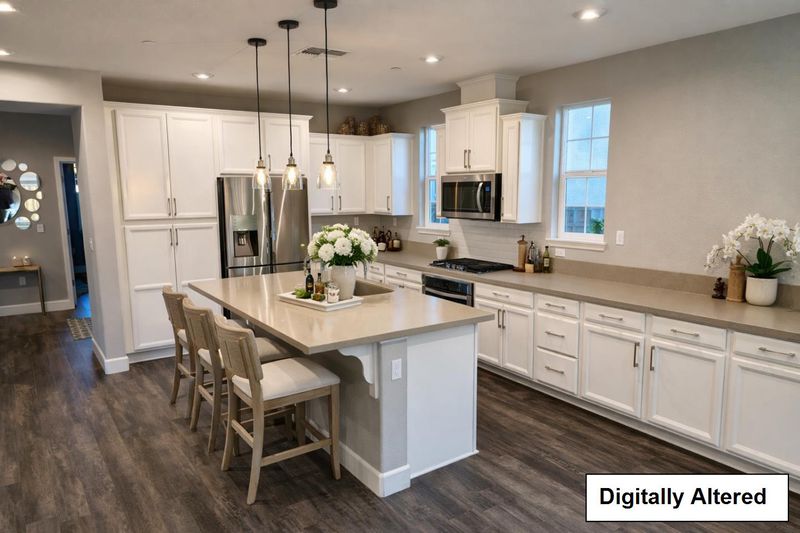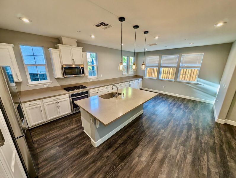 - Countertop - Quartz, Dishwasher, Island, Microwave, Oven Range - Gas, Refrigerator