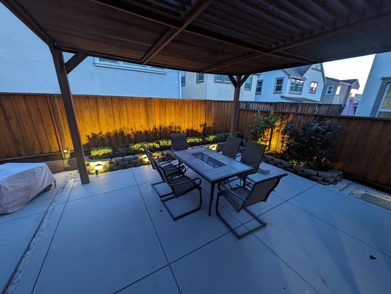 Stunning 4 bed, 3 bath home in the desirable Harvest Park community, showcasing modern upgrades and a bright open-concept design. The chefs kitchen features an oversized island, quartz countertops, white cabinetry, and stainless steel appliances, seamlessly flowing into a spacious family room with direct access to a beautifully landscaped backyard with covered pergola, perfect for indoor-outdoor living.A main-level bedroom and full bath offer flexibility for guests or multi-generational living. Upstairs, enjoy a luxurious primary suite with spa-like bath, soaking tub, separate shower, and dual walk-in closets, plus Jack-and-Jill bedrooms, loft, and convenient laundry room. Additional highlights include multi-zone HVAC with Nest thermostat, tankless water heater, recessed lighting, and upgraded laminate flooring throughout. A truly exceptional home, don't miss it!