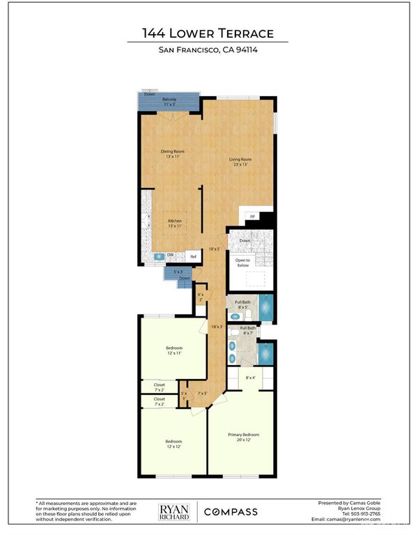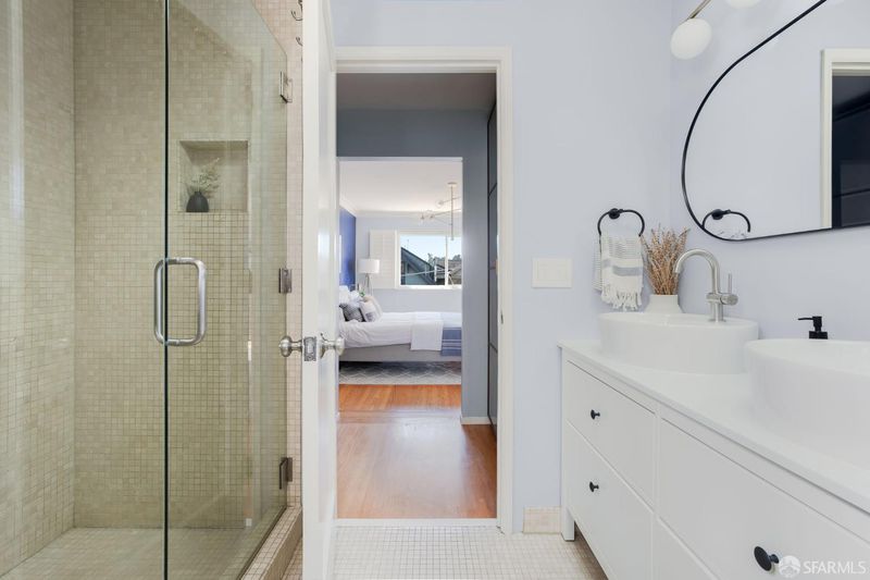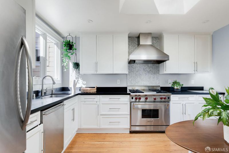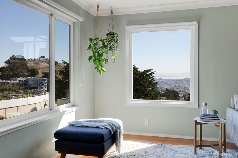 Tucked onto a quiet street in Corona Heights, 144 Lower Terrace is a beautifully polished top-floor condo in a two-unit building with a comfortable, open floor plan and generously sized rooms. Large windows, full-light doors and multiple skylights bring light into every corner of this home and offer views of the Bay and the surrounding hills from the living and dining rooms.The large, updated kitchen is highlighted by designer counters and a commercial grade Wolf range while the updated bathrooms offer a spa-like experience with natural stone or marble tile. The home features hardwoods throughout, a gas fireplace to anchor the living room for those chilly fall evenings, and access to the shared rear yard directly from the home's private deck. The attached garage offers parking and ample, dedicated storage.