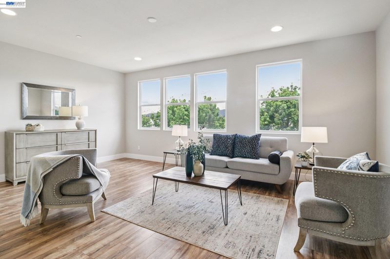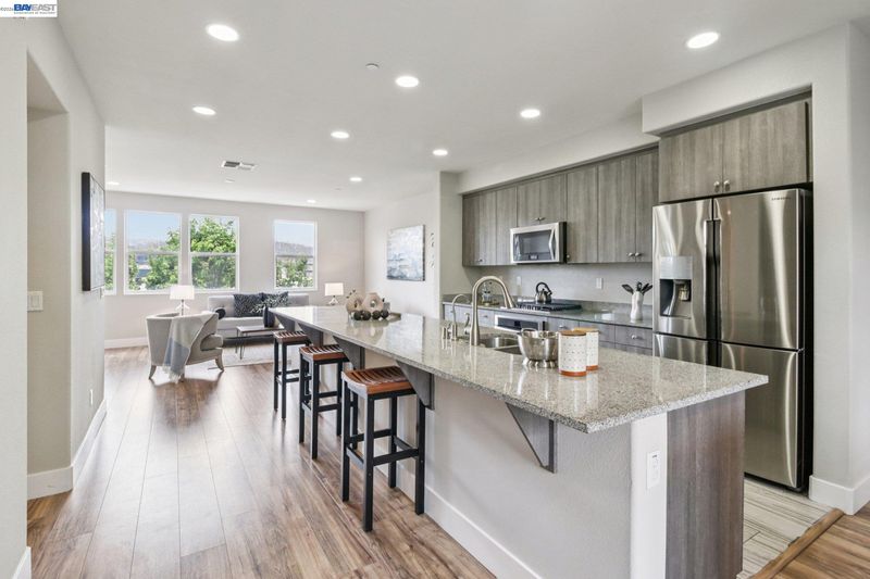 Beautifully designed Dublin newly built home, offering modern comfort and a functional layout. Versatile ground-level space ideal for office, playroom, or flex use. Open-concept main level with seamless kitchen, dining, and living areas, perfect for everyday living and entertaining. Kitchen features sleek cabinetry, premium appliances, and a spacious island. Upstairs primary suite with well-appointed bath and walk-in closet. Additional bedrooms offer flexibility for family, guests, or work-from-home needs. Energy-efficient features throughout. Side-by-side 2-car attached garage plus rare 2-car driveway. Approx. 2-minute walk to BART, ideal for commuters. No rear neighbors for added privacy. Home faces a lush community greenbelt, providing an open grass setting that feels like your own front yard. Conveniently located near top-rated schools, parks, shopping, dining, and major commute routes.