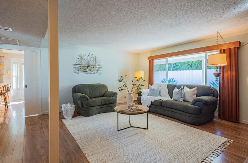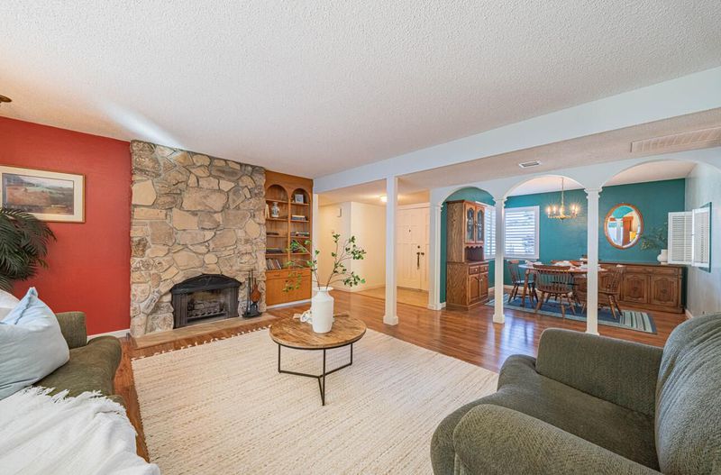 Welcome to this charming, lovingly cared-for home in a desirable, family-oriented neighborhood of South Salinas. Owned by the same family for many years, this residence reflects true pride of ownership throughout. The front exterior showcases custom pavers throughout the driveway, a drought-resistant rockscape and plantings, a privacy wall and gate, and a welcoming front patio complete with a tranquil water feature, creating a peaceful space to relax or entertain. Inside, you're greeted by a formal living room with a cozy wood-burning fireplace, complemented by a separate formal dining room. The kitchen and family room combination offers a warm, inviting space with a sliding glass door leading to the backyard. All bedrooms are thoughtfully located on the right side of the home and feature premium wood laminate flooring throughout. The spacious primary bedroom features an updated shower bath. Additional upgrades include dual-pane windows, a newly replaced water heater, and a Presidential-style roof. The backyard offers custom pavers and updated wood fencing, while the side yard features mature fruit trees, adding both charm and functionality to the outdoor space. A wonderful opportunity to own a well-maintained home in one of South Salinas most sought-after neighborhoods.