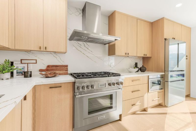 - Countertop - Quartz, Dishwasher, Garbage Disposal, Hood Over Range, Oven Range - Gas, Refrigerator, Skylight